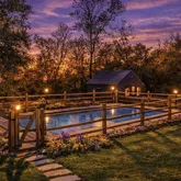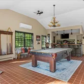 The renovated barn offers remarkable flexibility, featuring an impressive new kitchen, a bedroom with poolside views, and an updated full bath with laundry—making it an ideal guest retreat, entertaining venue, or extended living space for friends and family.