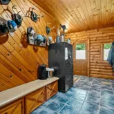 In addition to this beautifully maintained 3-bed, 2-bath log home, it also includes 10 acres of farmable hay, making it ideal for agricultural use or income-producing potential. The horse pasture features a natural running stream, providing reliable water source for animals year-round. The 60x80 pole barn is fully operational. This space includes an office with a built-in propane fireplace, bathroom, shared space, on top of the four stalls of workspace. Already perfectly equipped for equipment storage, trades, small business operations, or hobby farming