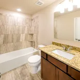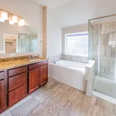 - Interior Features: Double Vanity, Granite Counters, High Ceilings, Kitchen Island, Kitchen Family Room Combo, Pots And Pan Drawers, Pantry, Soaking Tub, Separate Shower, Tub Shower, Ceiling Fans, Kitchen/Dining Combo