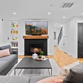 - Room Description: Bright and open living room with functional gas fireplace and built-ins