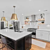 - Room Description: Gorgeous Chef's kitchen with quartz countertops, stainless steel appliances, and abundant counter seating