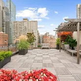 Welcome to this modern, sleek Prewar home, fully renovated for today's needs while evoking a Mid Century aesthetics. Featured details such as crown molding, beamed ceilings, new wood floors and custom recessed lighting all highlight impeccable quality. The large sunny South facing eat-in chefs kitchen can seat groups of friends or family, perfect for entertaining. All full-size stainless appliances. The generous living room faces South on to a quiet private courtyard, with a work/office area. The king size bedroom has City Quiet windows for restful relaxation, with an additional closet. A Windowed bath has been fully renovated with new floors, vanity, tiles, etc. There are total of 4 closets, one of them is a large customized walk-in. Built in 1930, this full-service Art-Deco inspired Coop has an elegant lobby with 24 hr. doorman, live -in resident manager. Building amenities include a beautiful landscaped roof deck with open views of city skyline; fitness center, large laundry room, and separate bike shed. Private storage bins available for rent. Conveniently located near Whole Foods, Trader Joe's, Bloomingdale's, with multiple fine dining options and shopping nearby. Walking distance to new East River Esplanade as well as to all public transportation. Subway lines #E/M/6/4/5/N/R/O/W all within short walking distance. Low monthly maintenance. Please note Pied-a-Terres, Sublets not allowed. One dog allowed under 30 lbs. 2% flip tax paid by purchaser.