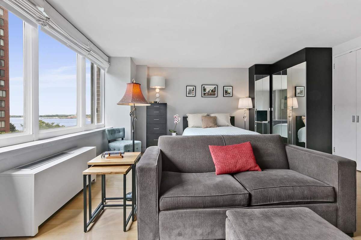 ...Enjoy luxury riverside living in this spacious studio located in one of New York City’s greenest neighborhoods! This bright south-facing home features an open kitchen with dishwasher, marble counter, and stainless appliances, an in-unit washer/dryer, and mirrored closets that are custom-built by California closets.