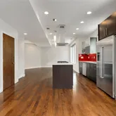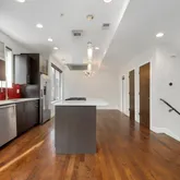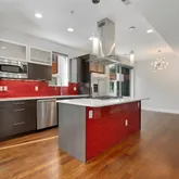- Room Description: wood flooring, stainless steel appliances, quartz countertop, island