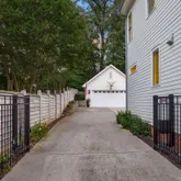 Step outside to enjoy a charming front porch and professionally landscaped yard with accent lighting and sprinkler system. Home has a security system and is wired for a surround sound system. The fenced backyard and electric driveway gate provide added privacy and an ideal space for entertaining or play. A detached garage includes pull-down attic stairs for additional storage.