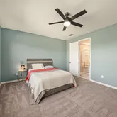 - Interior Features: Ceiling Fan(s), Living Room/Dining Room Combo, Open Floorplan, Primary Bedroom Main Floor, Solid Surface Counters, Thermostat