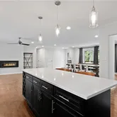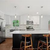 - Kitchen Features: Breakfast Bar, Cabinets White, Stone Counters, View to Family Room