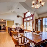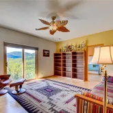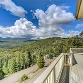 this spacious floor plan offers endless possibilities. Open living, and dining areas with a slate fireplace, Bamboo floors, high cathedral ceilings, walls of windows and access to a front deck. The sunny kitchen has plenty of cabinetry, a walk in pantry, and access to a side deck. The Master Suite offers a steam shower, walk-in closet, a cozy fireplace and a sun drenched morning...Rocky Mountain High With Sweeping Mountain Views! Nestled into the hillside with spectacular views and southern exposure