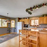 this spacious floor plan offers endless possibilities. Open living, and dining areas with a slate fireplace, Bamboo floors, high cathedral ceilings, walls of windows and access to a front deck. The sunny kitchen has plenty of cabinetry, a walk in pantry, and access to a side deck. The Master Suite offers a steam shower, walk-in closet, a cozy fireplace and a sun drenched morning deck. There is an additional main floor suite perfect for a large office or bedroom. The lower level walkout offers a family room, laundry area, third bedroom and bath. You’ll love the spacious wrap around deck perfect for viewing local wildlife