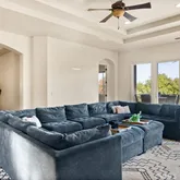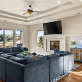 - Interior Features: Ceiling Fan(s), Coffered Ceiling(s), Crown Molding, Granite Counters, Living Room Balcony, Open Floorplan, Storage, Tray Ceiling(s)