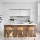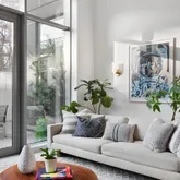 Step into 1E’s dramatic 42-foot-long great room with floor-to-ceiling doors and a wall of windows. The impressive expanse of 12 foot ceilings and bright natural light sets the tone for this impressive home. Anchoring one side of the massive entertaining space is a beautiful and highly functional open island kitchen with separate refrigerator and freezer, state of the art appliances, Danby marble countertops and backsplash, and an oversized breakfast bar. Adjacent to the kitchen is a walk-in-pantry, concealed trash and recycle bins, a coffee bar, and laundry room. The great room is airy, spacious, bright and pin drop quiet. Separate dining and living areas open outdoors to a fully landscaped 700 square foot private garden with a dedicated gas line BBQ.