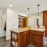 - Kitchen Features: Breakfast Bar, Cabinets Stain, Kitchen Island, Pantry, Solid Surface Counters, Wine Rack