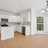 - Kitchen Features: Cabinets White, Kitchen Island, Stone Counters, View to Family Room
