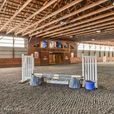 The main barn is an equestrian's dream, featuring an attached 85x200 ft indoor arena with Elite footing specifically formulated to absorb shock to provide a stable, low-impact riding experience. The arena is illuminated by a three-tier window design, flooding the space with natural light, while a heated, elevated viewing room offers a perfect vantage point for guests to observe year-round, in comfort. For outdoor riding, a 120x240 ft arena with excellent drainage provides all-weather access, allowing riders to practice in any season. Additionally, a lush grass field with cross-country-style jumps enhances the training options and encourages riders and horses to explore new terrain and challenges. The property also boasts multiple paddocks, separated by updated fencing and featuring automatic waterers and convenient access roads for feeding, as well as miles of wooded trails for scenic rides and endurance training. In addition to its exceptional equestrian facilities, The Stables at MiraBella offers a range of residential accommodations, making it ideal for family, friends, or staff. The main house, positioned on a gentle hill overlooking the property, features a 3-bedroom, 2.5-bath Cape Cod-style design with modern upgrades throughout. Vaulted ceilings, an open floor plan, and a full basement with grade-level access create a spacious, comfortable home with spectacular views of the surrounding vistas and pond, which includes a fountain for added ambiance. A secondary house on the property offers four fully renovated apartments in a charming farmhouse style, three of them are two-bedroom units- each with its own deck or private yard space. These apartments provide flexible living arrangements, whether for property managers, trainers, guests, or as rental units for additional income. The estate is completely equipped with essential infrastructure, including four water wells, three septic systems, and a separate two bedroom cottage close to the new lower barn, offering living space for staff or guests. Currently operating as a thriving equestrian center, The Stables at MiraBella also offers flexibility for alternative uses such as a family compound, wedding venue, restorative retreat, or investment property with potential development options. With a scenic layout designed to be functional yet tranquil, this estate offers endless possibilities for its next owner. With some necessary equipment included in the sale, new owners can seamlessly continue operations or transform this property to suit their vision.