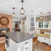 - Fireplace Features: Double Sided, Fireplace - Glass Doors, Brick