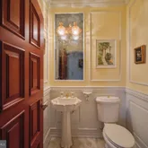 A standout attribute of this residence is the walk-in wine cellar, with an impressive capacity to store 1,500 bottles, intricately-designed railings and aesthetic security grilles - a feature seldom seen in borough homes. The quality of this residence extends into the two-car garage, displaying well laid tile flooring, custom-built cabinetry, and a utility sink, all testament to the meticulous attention to detail. Gaining access to the property is stress free; the association entranceway leads you to your private two car garage and also provides a designated guest parking space. For an added sense of comfort, the home is equipped with a full-capacity generator and elevator, while thoughtfully implemented security measures provide peace of mind regardless of how the property is utilized. Positioned in the heart of New Hope, with its vibrant cultural scene and picturesque landscapes, 34 W. Mechanic St dazzles with its grand interiors, generous space, and unparalleled locale. This unique residence represents an elegant way of living where superior artistry merges seamlessly with the allure of one of the region's most cherished riverside communities. The moment has arrived to embark on the sunrise of your next chapter, and indeed, there exists no superior place for such a beginning than right here. (*Certain images have been modified to show how rooms could appear without furniture.)