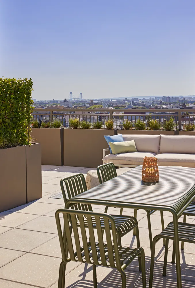 Bright, white, open plan kitchens seamlessly blend into expansive, neutral palette, great rooms befit your personal touch. Let your inner designer go wild playing off the contrast between stark white interiors and the clearly visible azure blue sky. Graciously sized bedrooms are perfect for those who’ve dreamed of the ultimate NYC amenity, a king sized bed, and storage will be a breeze with deep pocketed closet spaces!