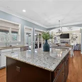 - Kitchen Features: Breakfast Bar, Breakfast Room, Cabinets White, Eat-in Kitchen, Kitchen Island, Pantry Walk-In, Stone Counters, View to Family Room