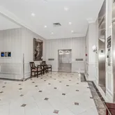 The living area, bedroom and kitchen all enjoy serene south-facing views of the beautifully landscaped private gardens—an urban oasis right outside your window. A separate dressing area off the foyer (5'7 × 10'2) adds another functional space for a home office or vanity. Combining elegance with practicality, this condominium offers a perfect space for permanent living, an investment property or pied- à -Terre.