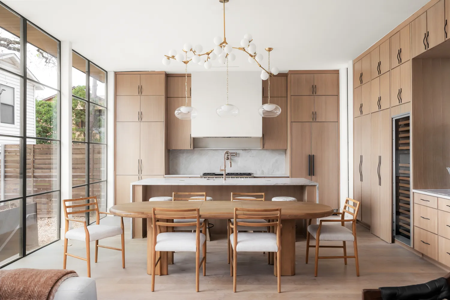 As you enter this modern new construction home, you are greeted by an enchanting light well and welcomed into a bright and open floor plan. The main floor curates an inviting atmosphere for both relaxing and entertaining as it seamlessly integrates the living, dining, and kitchen areas, all centered around a fireplace. Positioned alongside the living space are floor-to-ceiling sliding glass doors, allowing for a natural flow and progression from inside to out. Showcasing the commitment to quality and sophistication, the gourmet kitchen is equipped with luxury fixtures, custom cabinetry, top-of-the-line stainless steel appliances, a butlers pantry and a large center island with ample seating.
