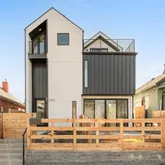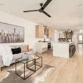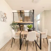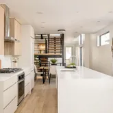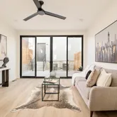 The main level features open-concept living...Dynamic Duality in the Heart of RiNo. This new development contemporary duplex residence delivers design-driven urban living in Denver’s sought-after RiNo Art District, offering three levels of refined living plus a finished basement and multiple private outdoor spaces. Striking modern architecture defines the exterior, highlighted by a dramatic three-story window wall, open stair feature, and sculptural catwalk, capturing RiNo’s creative, urban character.