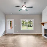 everyday living and entertaining. Luxury vinyl plank flooring runs throughout the home for durability and low-maintenance living. A dedicated laundry room/mudroom adds functionality and convenience. The split-bedroom floor plan provides privacy, with the