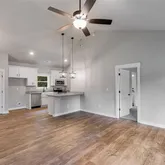 designed stepless ranch features 3 bedrooms and 2 full bathrooms with an open-concept layout highlighted by vaulted ceilings in the