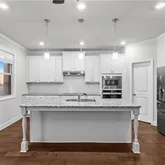 - Kitchen Features: Cabinets White, Kitchen Island, Pantry Walk-In, Tile Counters