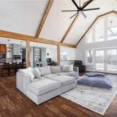 - Interior Features: Ceiling Fans, Cathedral Ceilings, Dining Area, Den, Separate Formal Dining Room, Guest Accommodations, Great Room, Kitchen Island, Kitchen Family Room Combo, Partially Furnished, Quartz Counters, Storage, Walk In Pantry, In Law Floorplan, Main Level Primary, Primary Suite, Programmable Thermostat, Workshop