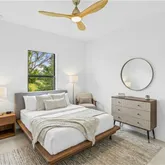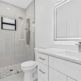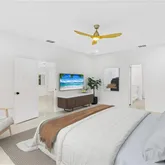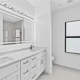 Soaring high ceilings and 32” porcelain tile with seamless grout lines keep things feeling sleek and airy—no carpet, no fuss. Every detail is elevated: heated bathroom mirrors, floor-to-ceiling tile, impact windows and doors, and modern stainless steel appliances that shine.