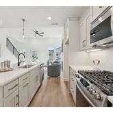 - Kitchen Appliances: Builtin Oven, Cooktop, Disposal, Gas Appliances, Island, Microwave, Pantry, Quartz, Stainless Steel Appliance