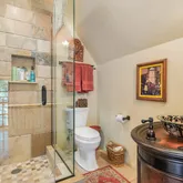 - Room Bathroom Features: Shower, Double sinks in bath(s), Double Sinks in Primary Bath, Exhaust fan(s), Soaking Tub, Stone Counters