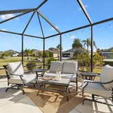 Ideally positioned in the highly desirable Village of Charlotte, this meticulously maintained 3-bedroom, 2-bath Designer Gardenia sits on a spacious corner lot with room for a future pool. A freshly painted exterior, custom hand-selected landscaping, and a rare third golf cart garage create a welcoming first impression for immediate Villages lifestyle living from day one. Designed for true Villages living, the home features an expansive screened lanai and wraparound screened patio complete with a custom built-in bar, newly planted privacy shrubs, and tropical palms—an ideal setting for relaxing, entertaining, and enjoying Florida’s indoor-outdoor lifestyle. Inside, the home shines with thoughtfully curated upgrades including brand-new luxury vinyl plank flooring, plantation shutters, crown molding, updated lighting, and fresh interior paint, all enhancing the bright, open layout and clean, modern feel. The split floor plan offers excellent privacy for guests, with a flexible third bedroom ideal for a home office or hobby space. The inviting kitchen features abundant cabinetry, a built-in pantry, deep pot drawers, and a breakfast nook with tranquil golf course and pond views, flowing seamlessly into the living and dining areas. The spacious owner’s suite serves as an elegant retreat with tray ceilings, dual vanities, separate closets, and a stunning Roman walk-in shower with floor-to-ceiling tile. Step outside to the screened lanai and wraparound patio with custom built-in bar, newly planted privacy shrubs, and tropical palms—perfect for relaxing or entertaining. Additional highlights include a solar attic fan, a valuable energy-efficient upgrade which reduces heat stress and lowers electricity costs while helping to extend the life of the roof and HVAC system, a well-appointed garage with built-in storage and workspace, a whole-house water softener, new water heater, and an advanced monitored home safety system providing monitored alerts for smoke, fire, carbon monoxide, water leaks, and flood detection—giving you complete peace of mind whether in the home or out of town. For added peace of mind, a pre-listing inspection has been completed, with all items addressed. A beautifully upgraded home oozing with upgrades and move-in ready in a prime central location—this is one not to miss! To complete the Villages lifestyle, an Electric Club Car Presidente is available as an optional addition. Schedule your showing today!