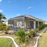 Ideally positioned in the highly desirable Village of Charlotte, this meticulously maintained 3-bedroom, 2-bath Designer Gardenia sits on a spacious corner lot with room for a future pool. A freshly painted exterior, custom hand-selected landscaping, and a rare third golf cart garage create a welcoming first impression for immediate Villages lifestyle living from day one. Designed for true Villages living, the home features an expansive screened...Move-In Ready Designer Gardenia on a Premium Corner Lot