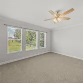 - Interior Features: Ceiling Fan(s), Crown Molding, Eating Space In Kitchen, High Ceilings, Kitchen/Family Room Combo, Open Floorplan, Primary Bedroom Main Floor, Solid Wood Cabinets, Split Bedroom, Stone Counters, Vaulted Ceiling(s), Walk-In Closet(s)