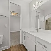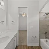 Jack-and-Jill bathroom ideal for guests or family visiting. A guest-friendly half bath and a