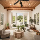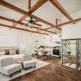 Located in Ojai's coveted East End, this Marc Whitman-designed sanctuary unfolds across nearly 2 acres of flat, usable land. Framed by wide-open mountain vistas and Ojai's iconic pink moment, the property lives as a true compound, offering a collection of thoughtfully placed structures that support both connection and privacy. The 2-bed, 2-bath main residence carries a warm, subtly Santa Fe-inspired design, with exposed beams, tall windows, and natural light that moves through an open interior layout....Located in Ojai's coveted East End, this Marc Whitman-designed sanctuary unfolds across nearly 2 acres of flat, usable land. Framed by wide-open mountain vistas and Ojai's iconic pink moment, the property lives as a true compound, offering a collection of thoughtfully placed structures that support both connection and privacy. The 2-bed, 2-bath main residence carries a warm, subtly Santa Fe-inspired design, with exposed beams, tall windows, and natural light that moves through an open interior layout. Nearby, a 1-bed, 1-bath pool house anchors the resort-style pool terrace, creating an easy setting for gatherings, wellness, or weekend guests. A separate 1-bed, 1-bath casita sits just beyond, ideal as a private guest suite, creative studio, home office, or multi-generational space. The grounds are generous and thoughtfully arranged, with mature fruit trees, raised garden beds, existing infrastructure for animals, and ample room for equestrian use or a small homestead. The result is a rare East End offering: versatile, quietly private, and set up to support a range of living styles, from everyday simplicity to multi-generational living.