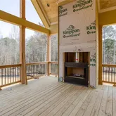 The gourmet kitchen is the heartbeat of this home. A custom hood that commands attention, stone counters built for both Sunday mornings and wine-paired evenings with your favorite people, and custom cabinetry that flows throughout the entire home like a thread tying every room together. Extreme millwork and site-finished flooring set a standard you'll notice in every sightline, every trim detail, every quiet transition from room to room. Retractable doors open from the main living to a covered porch with a wood-burning fireplace, so the indoors and outdoors become one seamless moment.