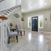 - Floor Covering: Hardwood, Travertine