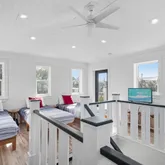 This home is designed for comfort, featuring an open floor plan, balcony, and gulf views from the 3rd-floor deck. The expansive outdoor space, coupled with 10-foot ceilings and custom-built wardrobes, enhances the home's open and inviting atmosphere.