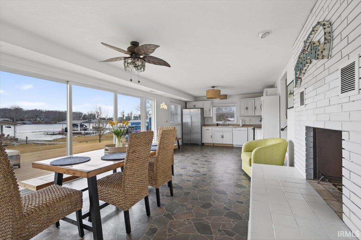 - Amenities: Ceiling Fan(s), Deck Covered, Deck Open, Deck on Waterfront, Detector-Smoke, Disposal, Dryer Hook Up Electric, Eat-In Kitchen, Firepit, Garage Door Opener