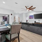 - Interior Features: Ceiling Fan(s), Living Room/Dining Room Combo, Solid Wood Cabinets, Stone Counters, Thermostat