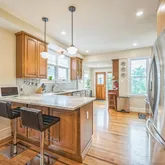 Where Timeless Charm Meets Modern Comfort! Step into a home that beautifully marries classic elegance with contemporary upgrades. Fully renovated in 2021, this stunning property welcomes you with a re-imagined front porch—now a cozy sitting area and sunlit home office featuring built-in shelving and refinished original wood floors. The spacious living room centers around a direct vent gas fireplace, framed by a custom mantel that speaks to the home’s warm character. The kitchen is a culinary dream:...Where Timeless Charm Meets Modern Comfort! Step into a home that beautifully marries classic elegance with contemporary upgrades. Fully renovated in 2021, this stunning property welcomes you with a re-imagined front porch—now a cozy sitting area and sunlit home office featuring built-in shelving and refinished original wood floors. The spacious living room centers around a direct vent gas fireplace, framed by a custom mantel that speaks to the home’s warm character. The kitchen is a culinary dream: 42" maple cabinetry, granite countertops, a sleek induction cooktop with pot-filler, an oversized sink beneath a large window, and a bright dining area perfect for gatherings. A newly added pantry enhances the home's functionality. Upstairs, the redesigned layout offers a luxurious primary suite with a generous walk-in closet and full bath with walk-in shower. Two additional bedrooms and a renovated hallway bath with a 6-ft soaking tub complete the second floor with comfort and style. The basement, enhanced with a lifetime-guaranteed French drain system, is partially finished—ideal for bonus living space or creative use. Thoughtful upgrades include: Preserved original woodwork and trims throughout, New powder room with stained-glass door insert, Fresh interior and exterior paint, 200-amp electrical service, Energy-efficient HVAC heat pump system. The property boasts a detached garage and a spacious, private backyard that’s perfect for relaxing or entertaining. Don’t miss this one-of-a-kind opportunity to own a home that combines soul, sophistication, and smart design.