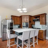 - Kitchen Features: Breakfast Bar, Cabinets Stain, Kitchen Island, Solid Surface Counters
