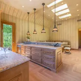 • Kitchen: Countertop - Granite, Island with Sink, Microwave, Oven Range - Built-In, Gas, Pantry, Refrigerator, Warming Drawer, Wine Refrigerator