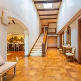 Timeless custom estate in peaceful central Atherton with 6 bedrooms, including a guest house and resort-inspired grounds. Completed in 2014, this exceptional 3-level home features a dramatic foyer with 22' high ceiling, elegant entertaining spaces and library. Casual spaces include a family-friendly great room, recreation room with pool table and bar, theater, wine cellar, elevator and a custom home office. The luxurious primary suite includes an attached office, two walk-in closets and sumptuous...Timeless custom estate in peaceful central Atherton with 6 bedrooms, including a guest house and resort-inspired grounds. Completed in 2014, this exceptional 3-level home features a dramatic foyer with 22' high ceiling, elegant entertaining spaces and library. Casual spaces include a family-friendly great room, recreation room with pool table and bar, theater, wine cellar, elevator and a custom home office. The luxurious primary suite includes an attached office, two walk-in closets and sumptuous marble bathrooms with views to the back yard. A separate guest house & BBQ island serves as the entertainment hub for the pool, putting green and magnificent private gardens. The beautifully designed grounds with mature landscaping benefit from a private well. Constructed of the highest standards and with premium materials and fixtures, this home will satisfy the most discriminating buyer. Situated in one of the most desirable locations in Silicon Valley, near Sand Hill Road and Stanford.