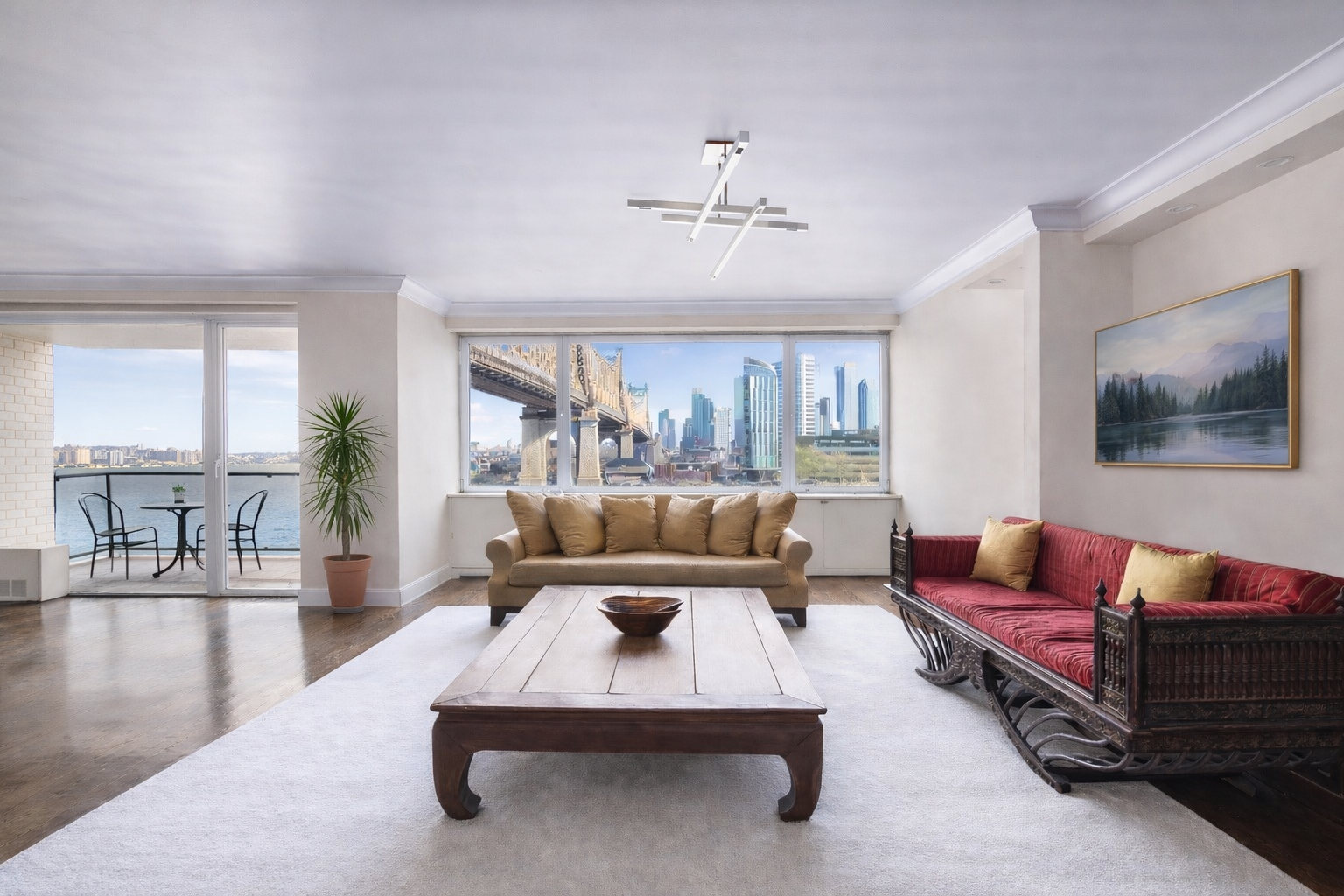 In the heart of Sutton Place, this expansive and light-filled home features four exposures including approximately 58 feet of eastern facing unobstructed vistas over the East River to the distinctive Ed Koch Queensboro Bridge from its expansive Living Room, Dining Room and Primary Bedroom, as well as its large private balcony. The entire residence has been thoroughly renovated.