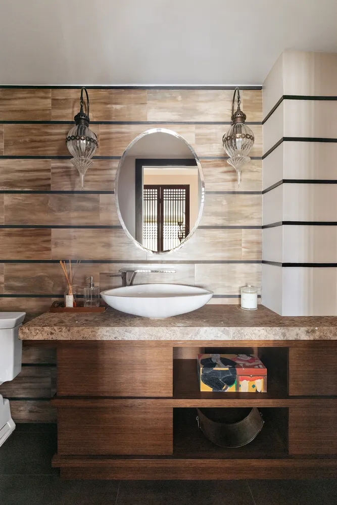 The very private and serene primary suite features a luxuriously-sized bedroom with an additional windowed space suitable for sitting room or home office, a spa-inspired primary bath, with double vanity, stone finishes and a Toto toilet, custom-fitted walk-in closet and two additional closets. Two additional king-size bedrooms comprising the northern wing of the home each feature renovated en-suite bathrooms and generous closet space.