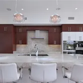 Upon entering the home, you will be greeted by an elegant foyer and a grand floating staircase leading to the upper levels, which are also accessible by elevator. Grand piano is breath-taking on its glass floor, with views to the lower level. Generous Butler's pantry/back kitchen with dishwasher, sink, etc. - perfect for entertaining and catering staff. Five oversized en-suite bedrooms, including sumptuous Primary Suite with ocean views, luxurious bath with steam shower & soaking tub, and stunning walk-in closet!!! Backyard with oversized waterfall spa, covered and heated patio, fridge, ice maker, even a ping pong table!