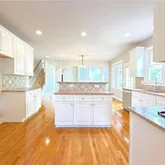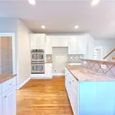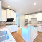 - Kitchen Features: Breakfast Bar, Cabinets White, Kitchen Island, Pantry Walk-In, Stone Counters, View to Family Room